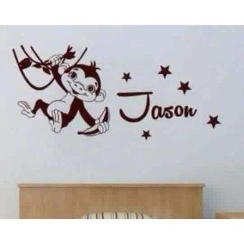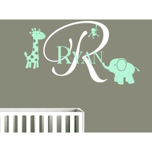 Personalised Name with Giraffe, Monkey and Elephant Wall Decal