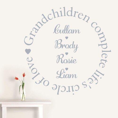 Grand Children Complete Life’s Circle of Love wall decal can fit upto 4 names