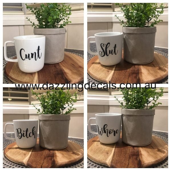| OPTION | bitch cup only, cunt cup only, Set of 4 bitch cups, Set of 4 cunt cups, Set of 4 cups 2 x cunt and 2 x bitch, Set of 4 mugs, slut cup only, whore cup only |