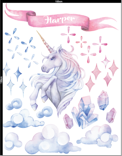 -1 Sheet of elements to make up Unicorn picture & Personalised Banner (approx 100 x 130cm